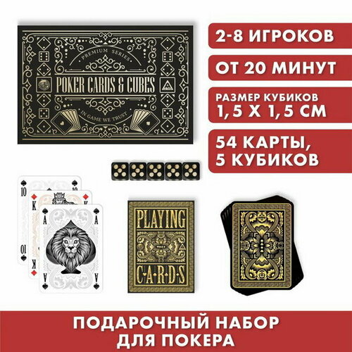 Карты игральные в подарочном наборе 2 в 1 «Poker cards and cubes», 54 карты, 5 кубиков