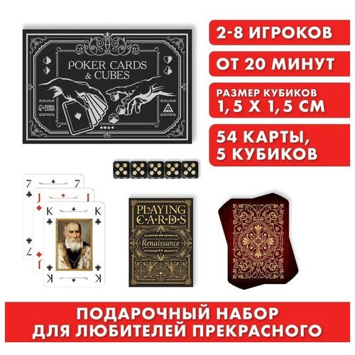Подарочный набор 2 в 1 «Poker cards and cubes», 54 карты, кубики