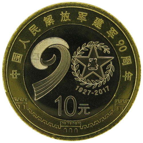 Китай 10 юань 2017 г. 90 лет Армии Китая (中国人民解放军建军90周年)