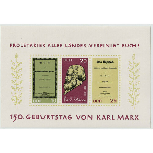 Марка 150-летие Карла Маркса. 1968 г. Блок.