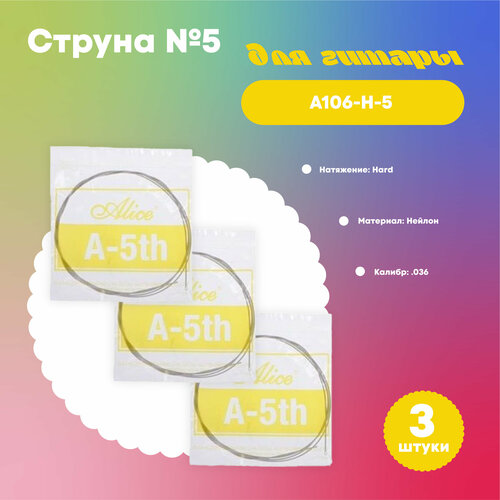 Отдельная струна №5 для классической гитары Alice AC106-H-5 (.036"), нейлон, комплект - 3 штуки