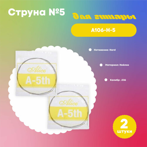 Отдельная струна №5 для классической гитары Alice AC106-H-5 (.036"), нейлон, комплект - 2 штуки