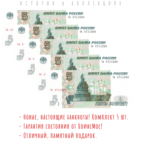 Россия 5 х 5 рублей 1997 (печать 2022) памятник «Тысячелетие России» UNC