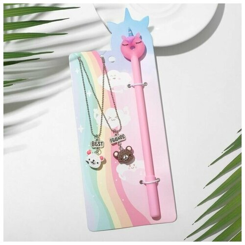 Набор 3 предмета: 2 Кольеа, ручка "Неразлучники" единорожки, цветной, 45см