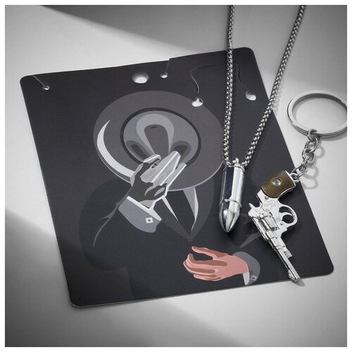 Набор 2 предмета: кулон, брелок "Револьвер", цвет серебро, 70см