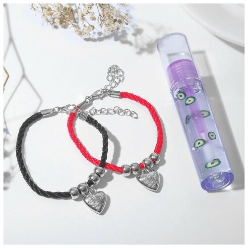 Цены на Набор 3 предмета: 2 браслета, блеск для губ "Неразлучники" сердца, цвет чёрно-красный, 6см микс, разноцветный в г. Пермь