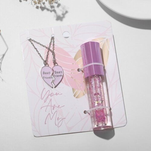 Набор 3 предмета: 2 кулона, блеск для губ "Неразлучники" сердце, цвет микс, 45см