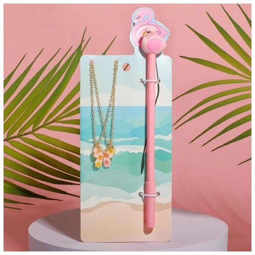 Набор 3 предмета: 2 кулона, ручка "Неразлучники" бабочка, цветной в золоте, 44см 7694363