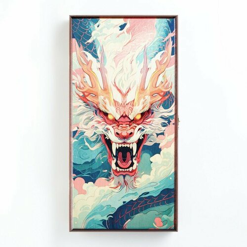 TAKE IT EASY Нарды "Дракон в облаках", деревянная доска 60 х 60 см, с полем для игры в шашки