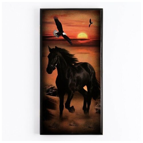 Нарды "Жеребец", деревянная доска 50 x 50 см, с полем для игры в шашки (1шт.)