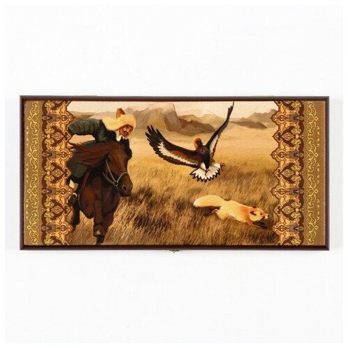Нарды "Охота с беркутом", деревянная доска 40 х 40 см, с полем для игры в шашки