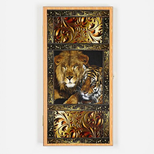 Нарды "Лев и тигр", деревянная доска 40 х 40 см, с полем для игры в шашки