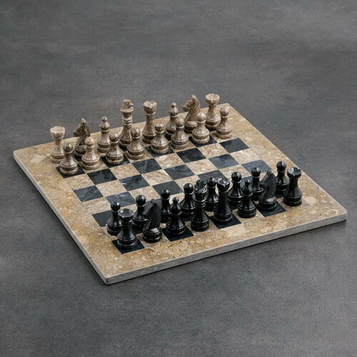Шахматы "Элит", серый/черный, доска 40х40 см, оникс