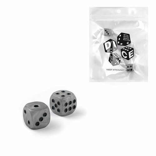 Кубики игральные, 1.6 х 1.6 см, набор 2 шт, серые