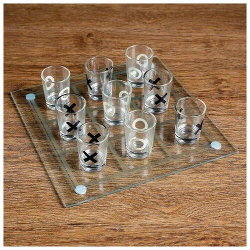 Пьяная игра "Крестики-нолики": 9 стопок, доска 20×20 см