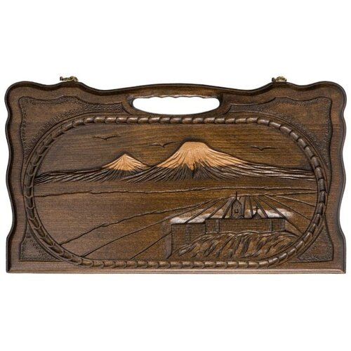 Нарды резные "Арарат и Хор Вирап" с ручкой 40, Haleyan