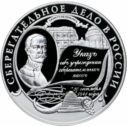 Серебряная монета 3 рубля в капсуле (31,1 г) 225-лет российскому страховому учреждению. ММД 2011 Тип: юбилейная или памятная