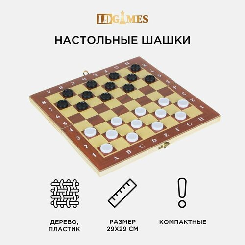 Настольная игра, шашки, дерево, пластик, 29х29см