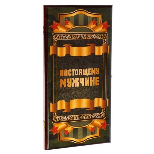 Нарды "Настоящему мужчине", деревянная доска 50 х 50 см, с полем для игры в шашки (1шт)