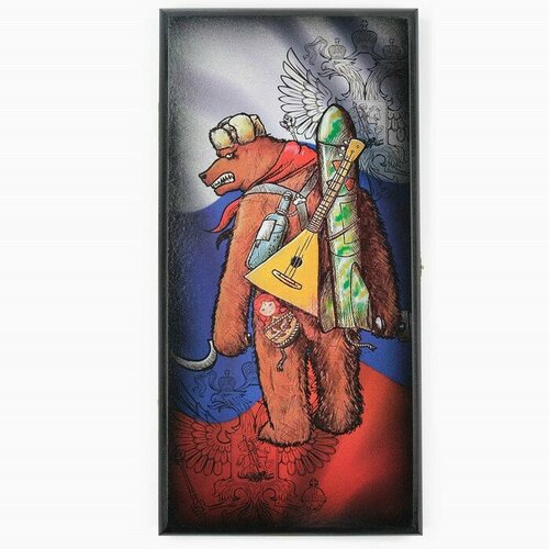 Нарды "Медведь с балалайкой", деревянная доска 40 х 40 см, с полем для игры в шашки