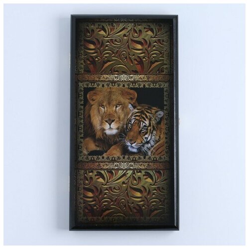 Нарды "Лев и тигр", деревянная доска 40 x 40 см, с полем для игры в шашки (1шт.)