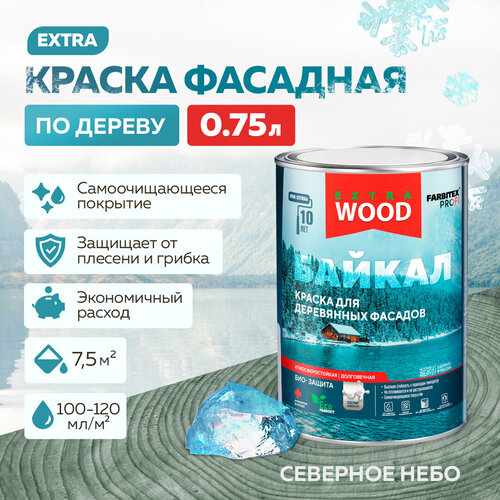 Краска для дерева, фасадов и интерьеров байкал FARBITEX PROFI WOOD EXTRA Северное небо 0,75 л