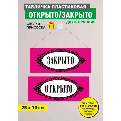 Табличка информационная двусторонняя на ПВХ открыто/закрыто, на присоске на дверь, размер 10х25 см
