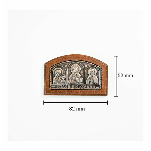 Автомобильная икона на дереве серебро, Триптих. Оберег в автомобиль.