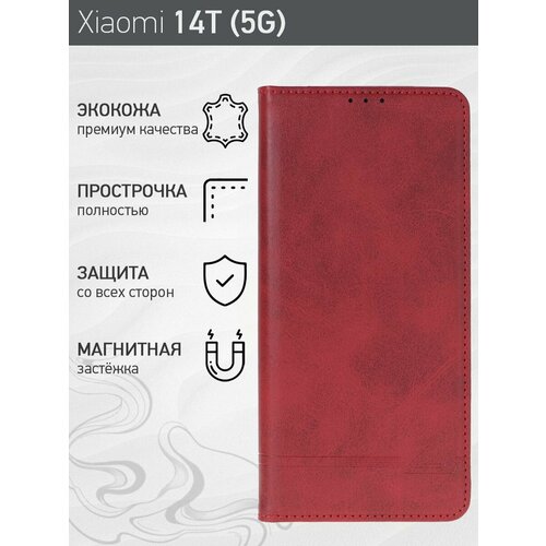 Стильный чехол-книжка для Xiaomi 14T (5G) (Сяоми 14Т 5Г) премиальная защита, функция подставки, отделения для карт, магнитная застёжка