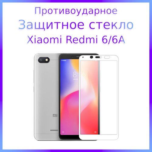 Стекло защитное противоударное закаленное для Xiaomi Redmi 6/6A Белая рамка