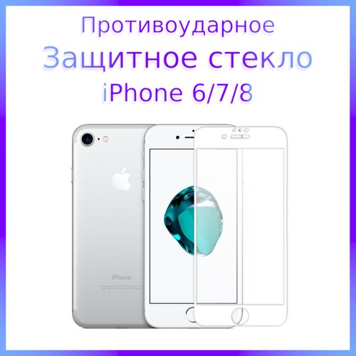 Стекло защитное противоударное закаленное для iPhone 6/7/8 Белая рамка