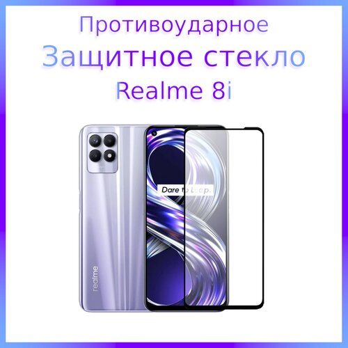 Стекло защитное противоударное закаленное для Realme 8i Черная рамка