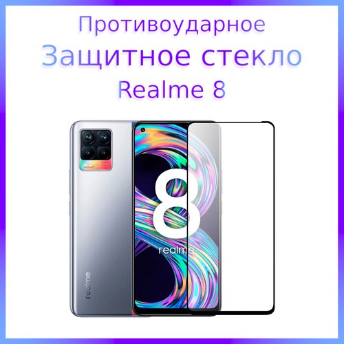 Стекло защитное противоударное закаленное для Realme 8 Черная рамка