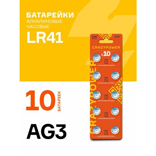 Батарейки CRAZYPOWER LR41 AG3, алкалиновые, 1.5В, 10 штук в блистере
