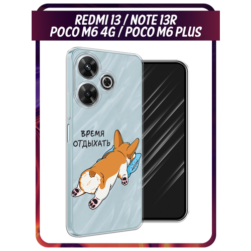 Чехол на Xiaomi Redmi Note 13R/Redmi 13/Poco M6 4G/M6 Plus / Сяоми Редми Ноут 13R/Редми 13/Поко М6 4G/M6 Плюс с принтом Корги отдыхает, прозрачный