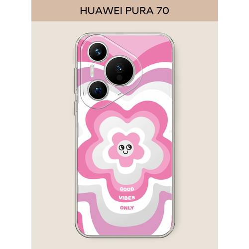 Силиконовый чехол "Good vibes only flower" на Huawei Pura 70 / Хуавей Пура 70, прозрачный