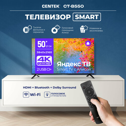 Телевизор Centek CT-8550, 50 дюймов с поддержкой 4К Ultra HD, Wi-Fi и Bluetooth
