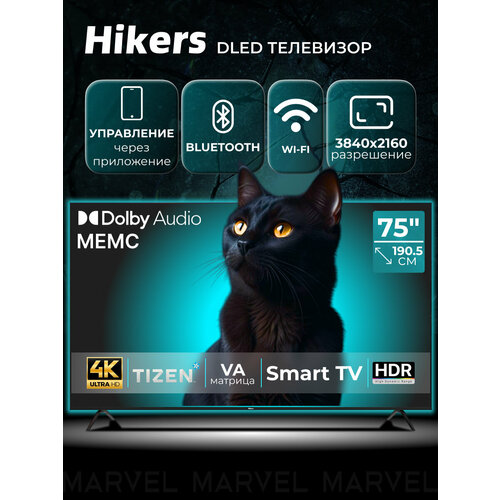 Телевизор 75" со Смарт ТВ Hikers 75HTU01 4K UHD, Smart TV, Wi Fi, Bluetooth, TIZEN OS, MEMC, Dolby Audio, HDR, DLED