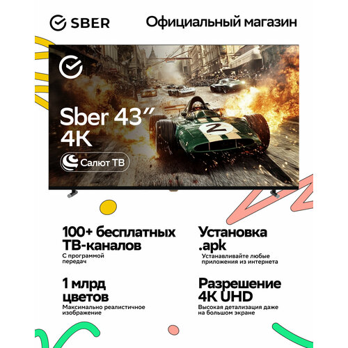 Умный телевизор Sber SDX-43U4124, 43"(109 см), UHD 4K RAM 2GB