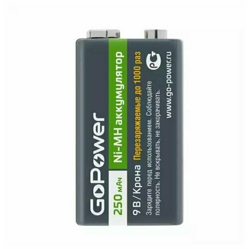 ABC Аккумулятор GoPower Крона/6F22 00-00017020, 9.0В 250мАч Ni-MH (1шт./уп.) (ret)