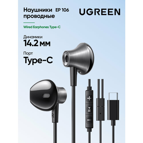 Проводные наушники UGREEN EP106 (35756) Wired Earphones Type-C. Цвет: черный