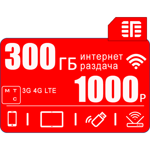 Сим карта МТС I интернет и раздача I для всех устройств I 300ГБ за 1000р/мес