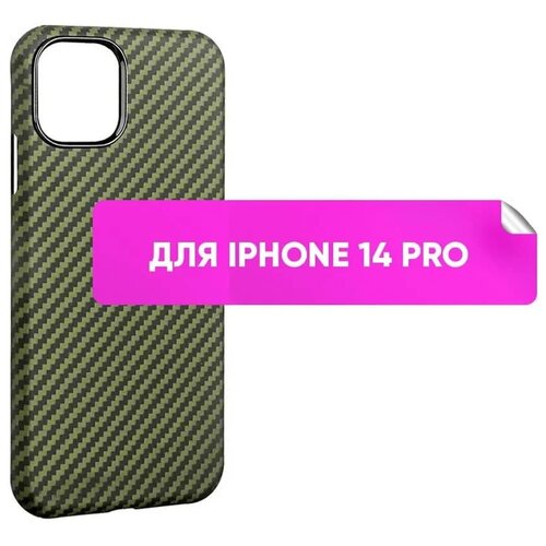 Чехол для iPhone 14 Pro 6.1" пластик под карбон / зеленый