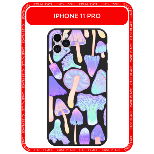 Черный матовый чехол на Apple iPhone 11 Pro / Айфон 11 Про с принтом Пастельные грибы