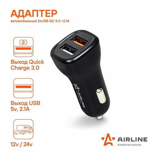 AIRLINE ACH-CQC3 oem адаптер автомобильный type-c pd + qc 3.0 42вт макс. 5-12в 3а макс. 12 / 24в (ach-cqc3)