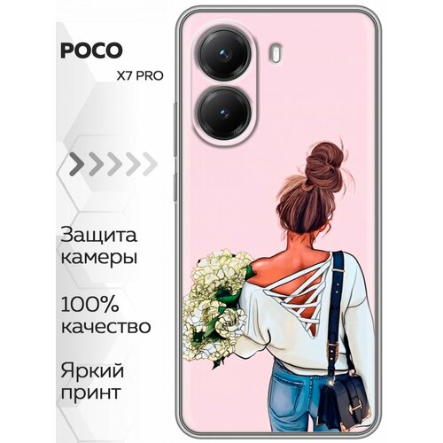 Чехол для Poco X7 Pro с принтом Девушка и букет (Поко Х7 Про)