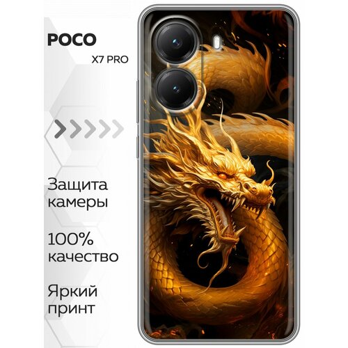 Чехол для Poco X7 Pro с принтом Дракон золотой (Поко Х7 Про)