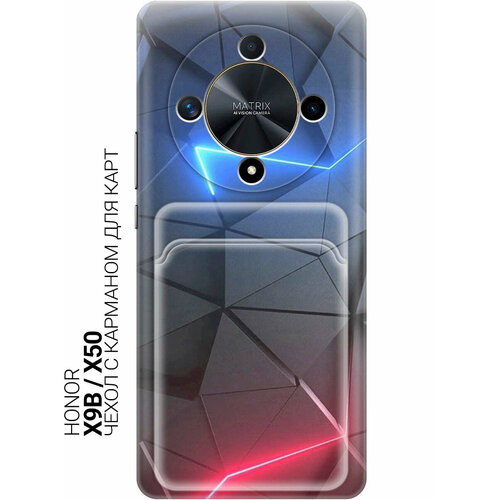 Силиконовый чехол на Honor X9b / X50 с принтом "Графитовые грани" с карманом для карты