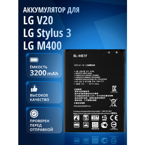 Аккумулятор BL-44E1F для LG V20 (H990DS), LG Stylus 3 M400DY