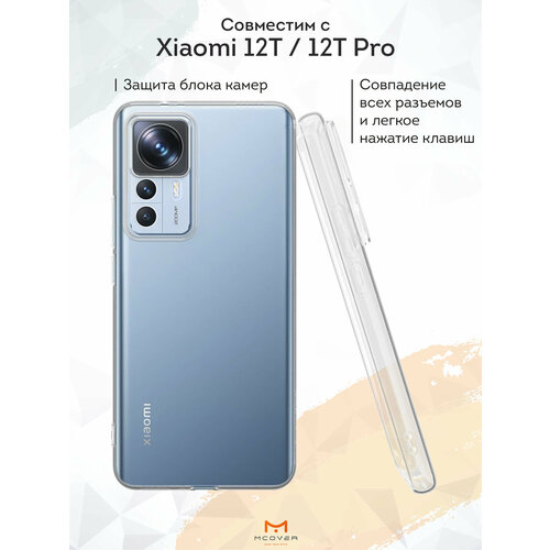 Силиконовый чехол Mcover на Xiaomi 12T/12T Pro (для Сяоми 12Т/12Т Про), прозрачный, с защитой камеры